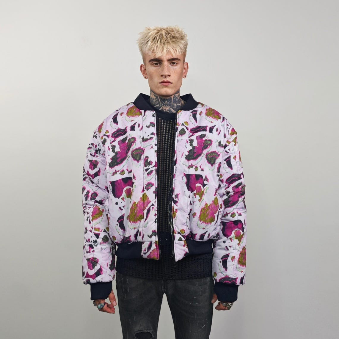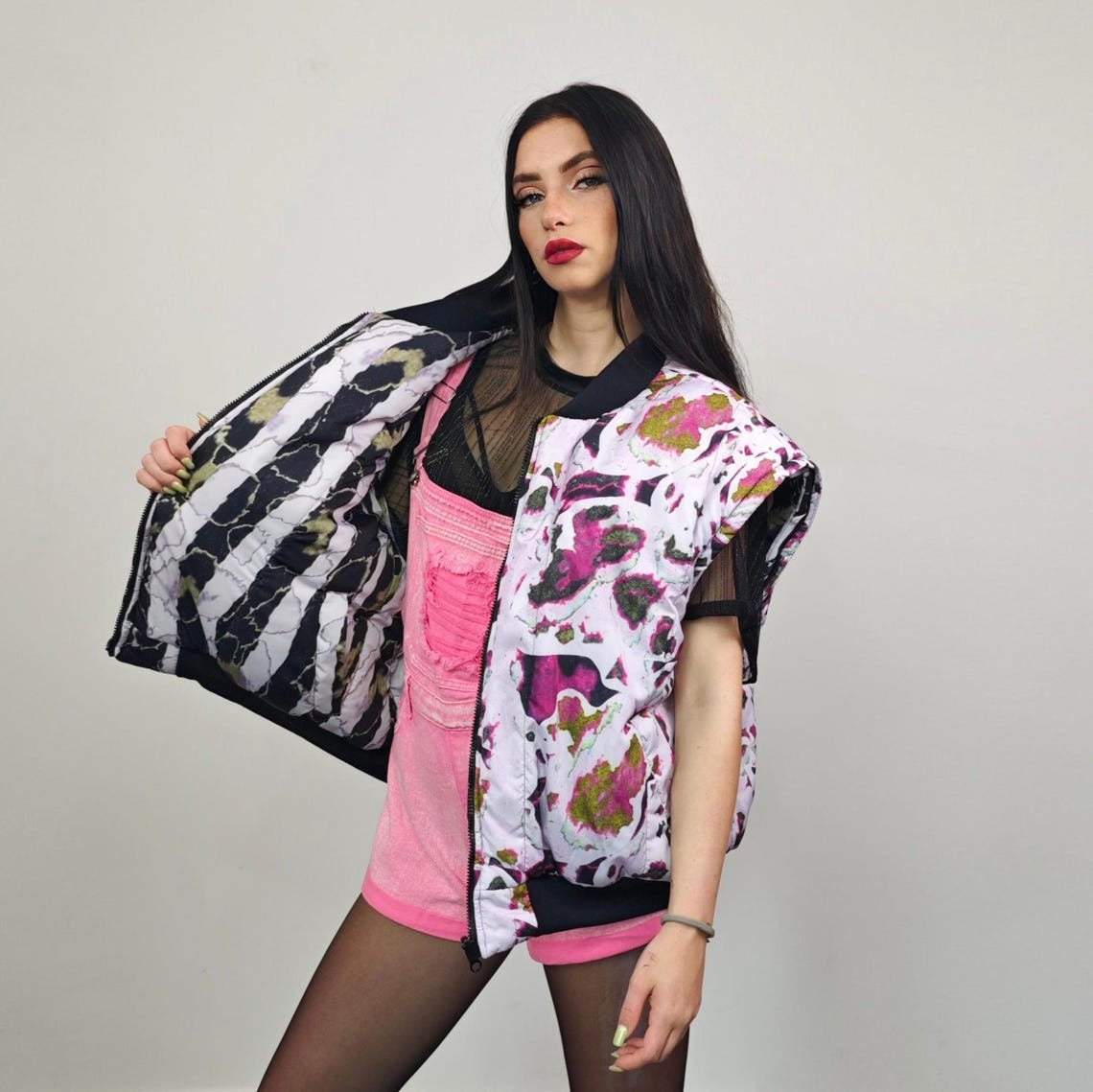 Vertical stripe bomber black white Beetlejuice jacket creepy reversible college varsity detachable sleeves handmade horror fan grunge coat
